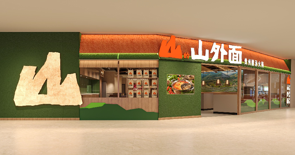 山的山外面是九毛九旗下又一火鍋品牌,主打來自貴州山里的好酸湯。來自大山里,走到山外面。以“山里來的酸”作為品牌標(biāo)語,表達(dá)樸實(shí)真誠(chéng)的品牌理念。將山里的好酸湯好食材,質(zhì)樸真誠(chéng)的人文屬性,帶到山外面。
